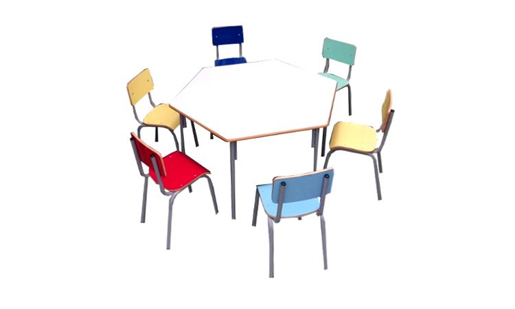 Conjunto Sextavado Coletivo ideal para o trabalho em grupo, estimula maior participação do aluno em aula e auxilia no processo de aprendizagem.