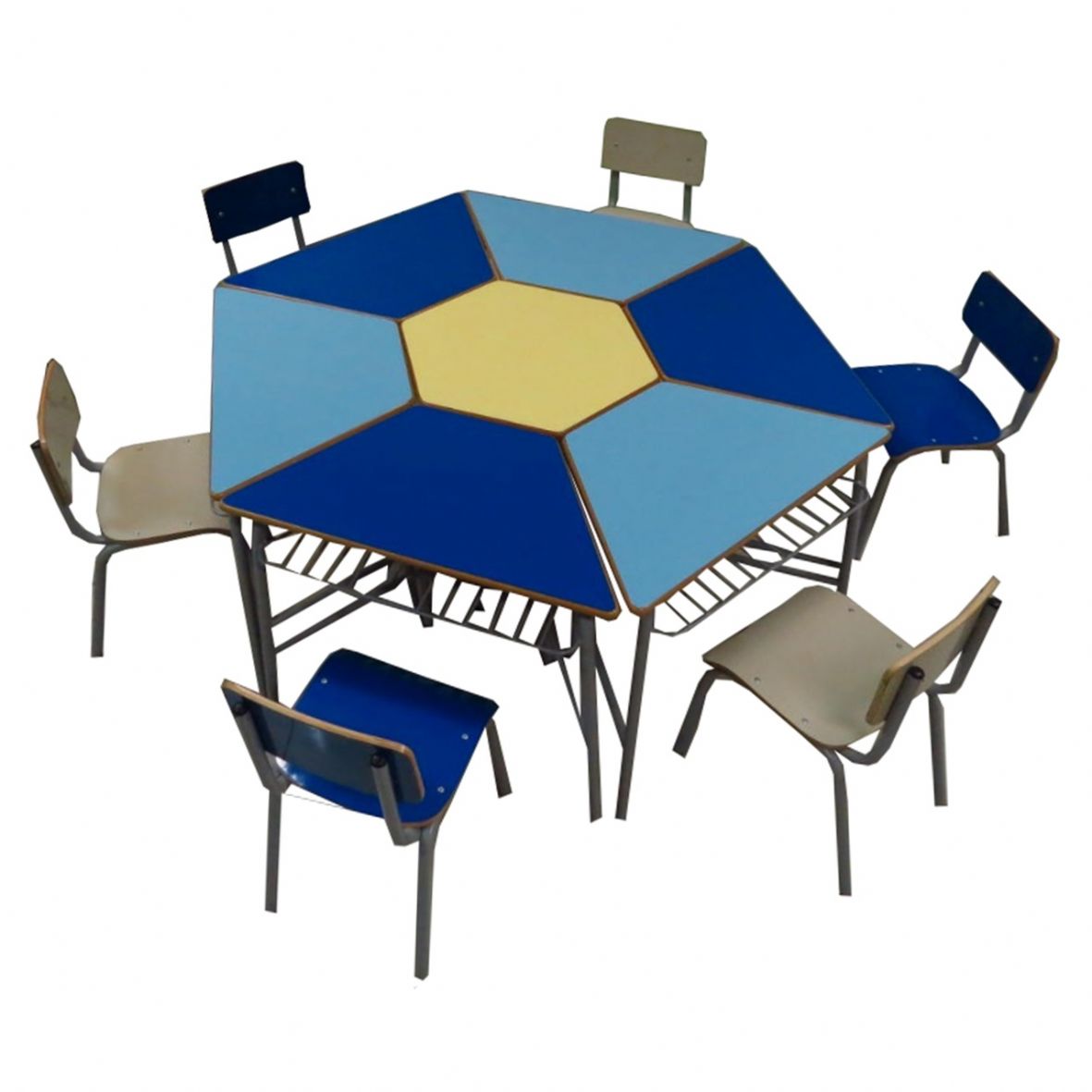 Mesa Sextavada Coletiva ideal para o trabalho em grupo, estimula maior participação do aluno em aula e auxilia no processo de aprendizagem.