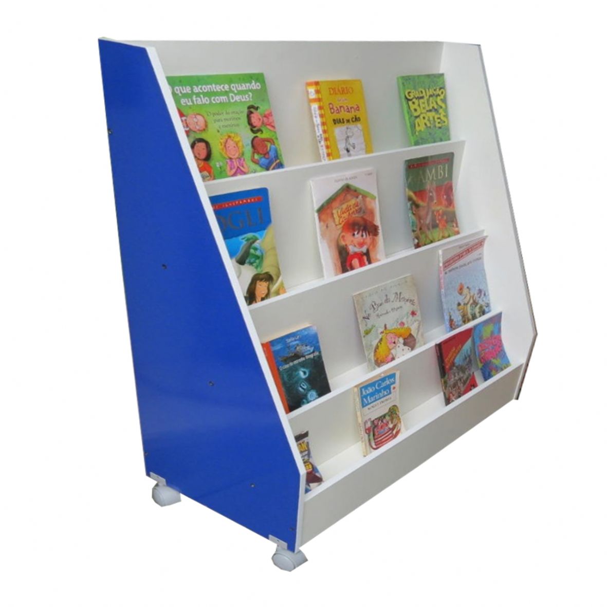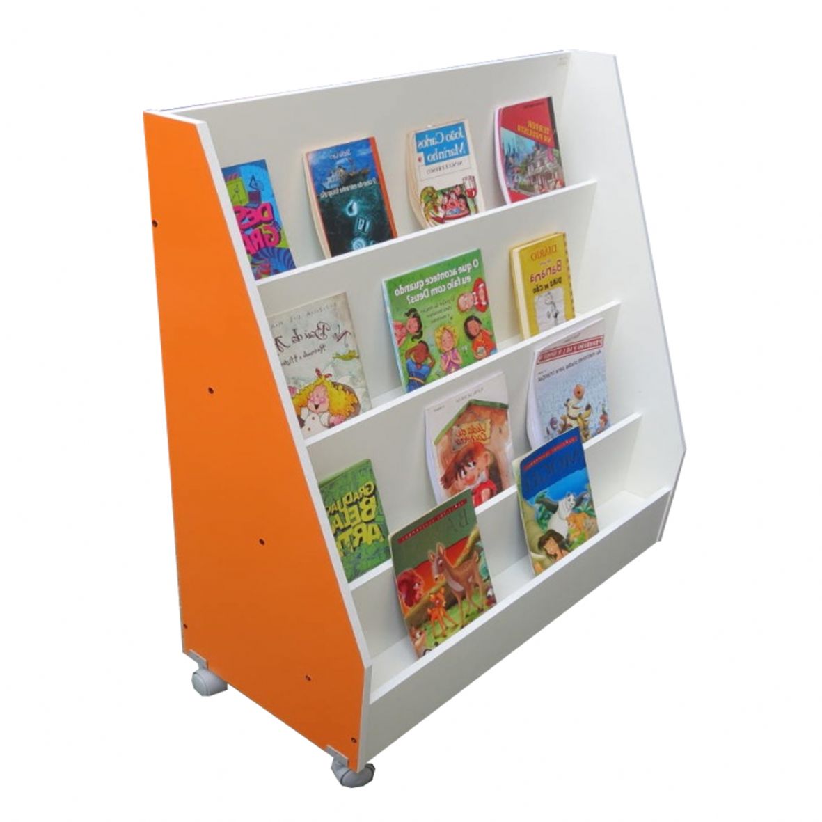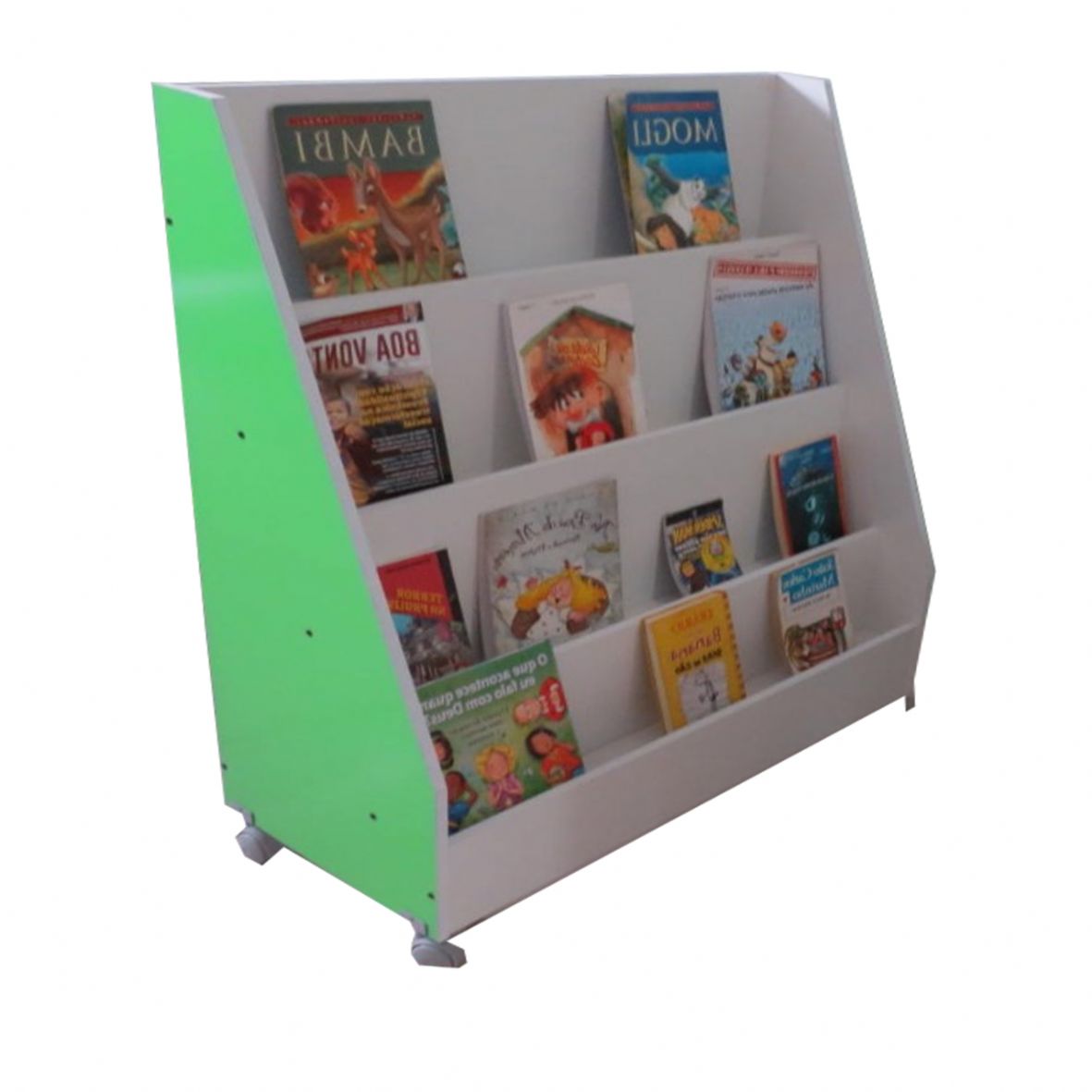 Estante ideal para exposição de conteúdos literários e publicitários seja em ambiente escolar ou corporativo.